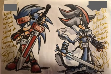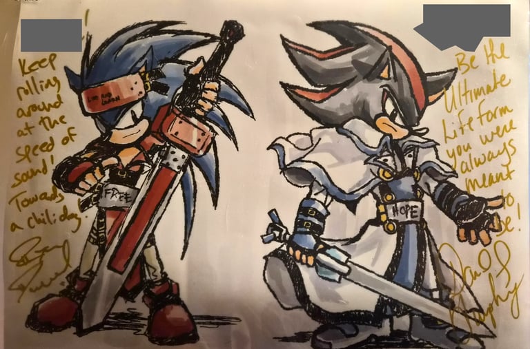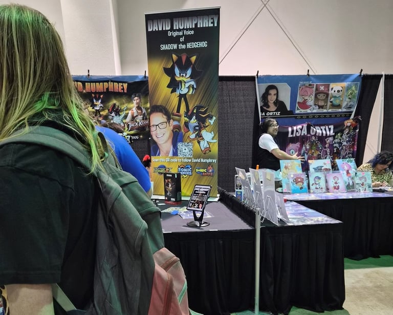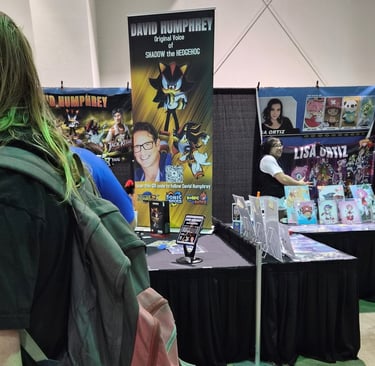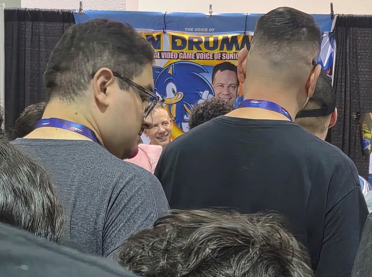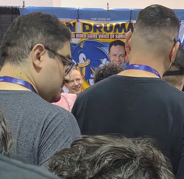 Next on the agenda was getting what I came there for, Ryan Drummond's autograph. I also planned on getting David Humphrey's (Shadow's original voice actor) too, so I drew an image of Sonic and Shadow for them to sign. It was about an hour wait for each, Humphrey's was a little longer because he went to eat while I was there. Lol. There was also an option to get a photo/video with them, but I was on a budget so I snuck the above pic. I tried to get one of Humphrey too but the people in front of me were too tall. Rip.